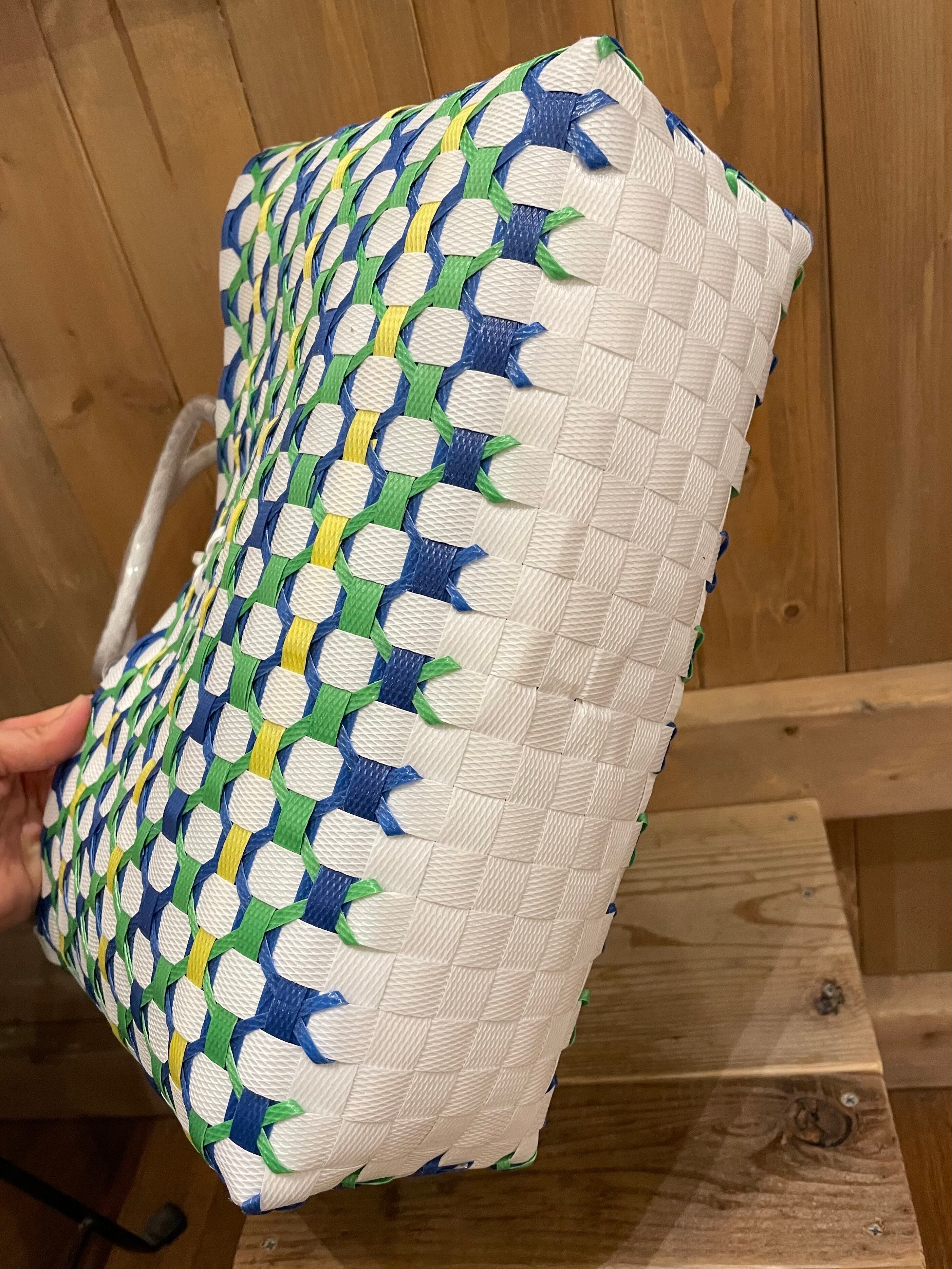 パサールバッグとは、バリの女性たちが朝、市場に買い出しに行くときに持っていくリサイクルプラスチック製のお買い物カゴのこと。