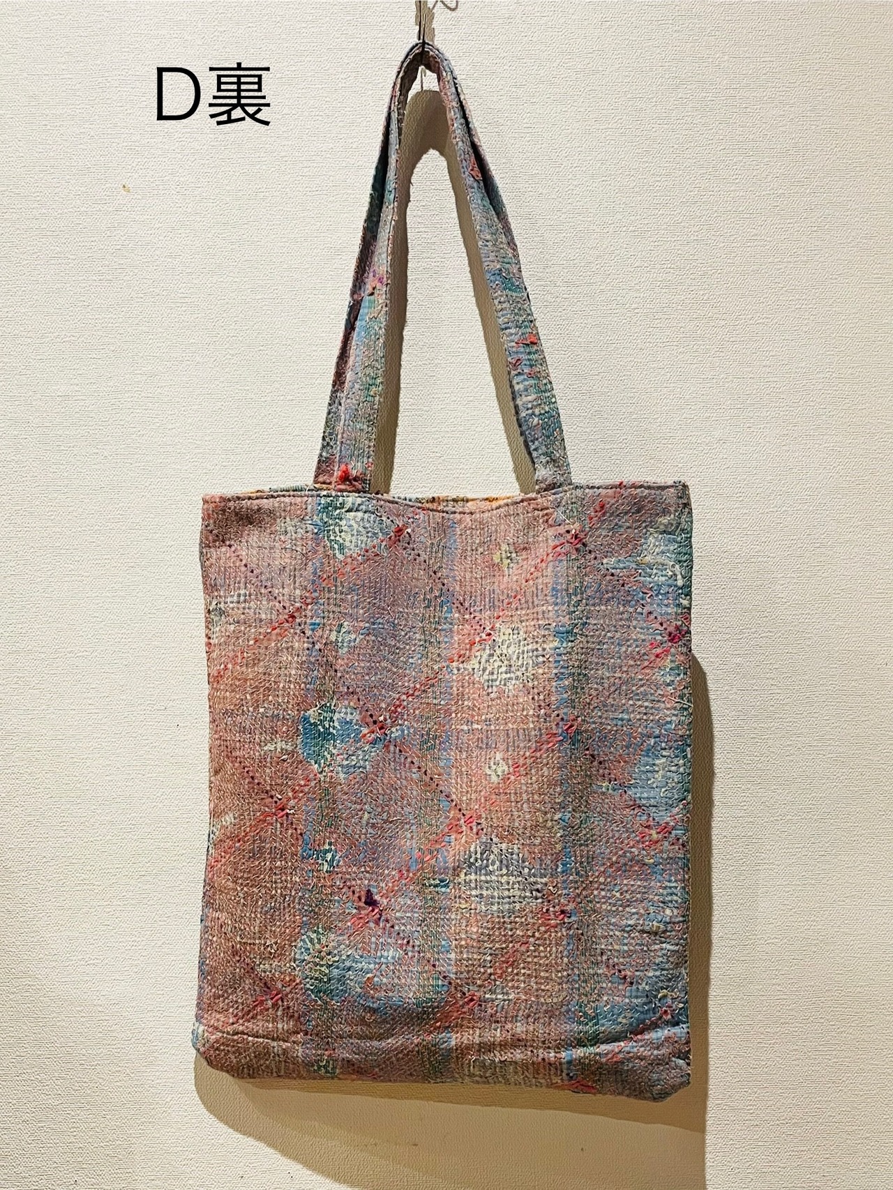 ★期間限定商品10/13まで★トートバッグD 1点もの ヴィンテージカンタ 古布 刺し子 サリー ドゥパタ アップサイクル インド