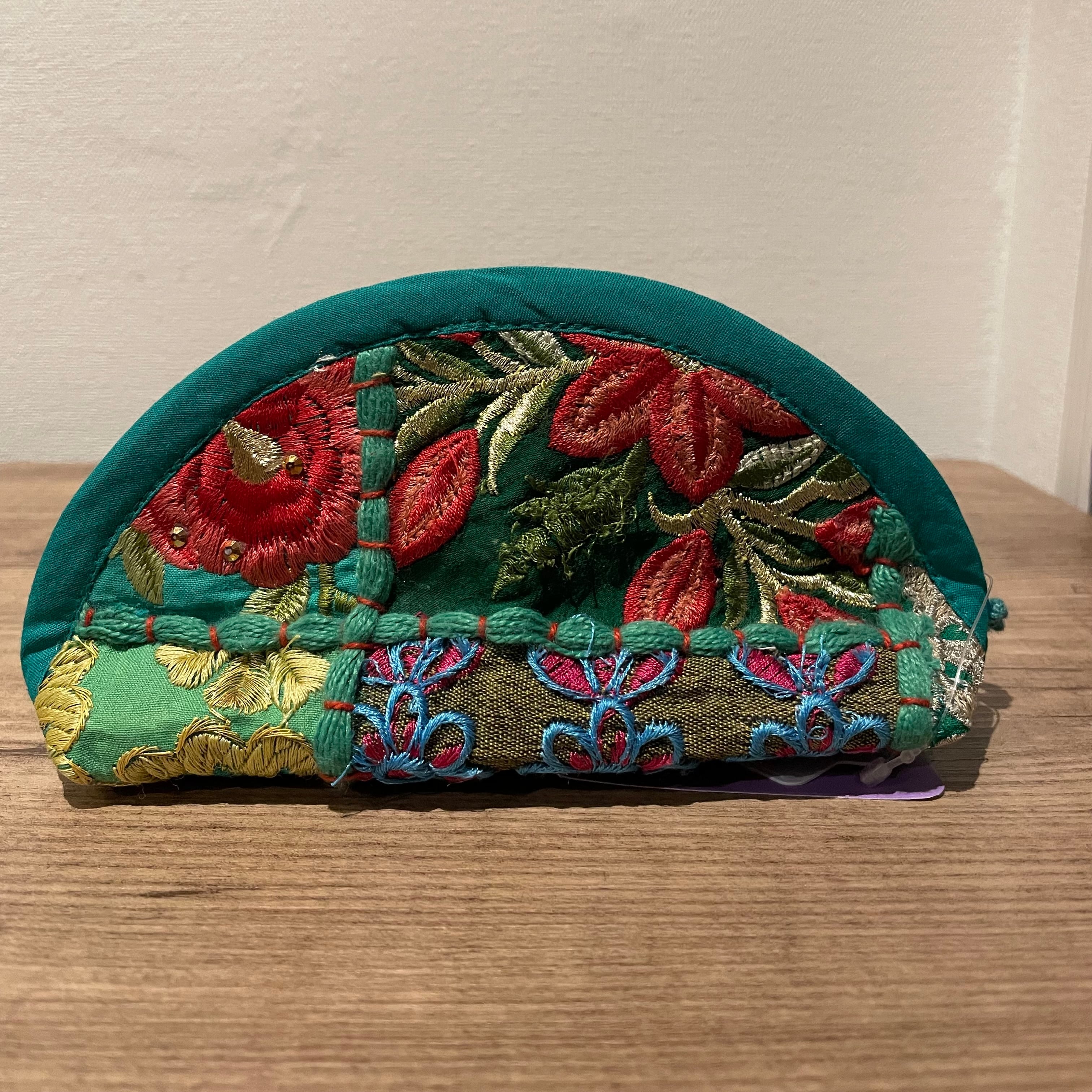 色とりどりのビーズやスパンコールの刺繍が贅沢にあしらわれた1点物ポーチは