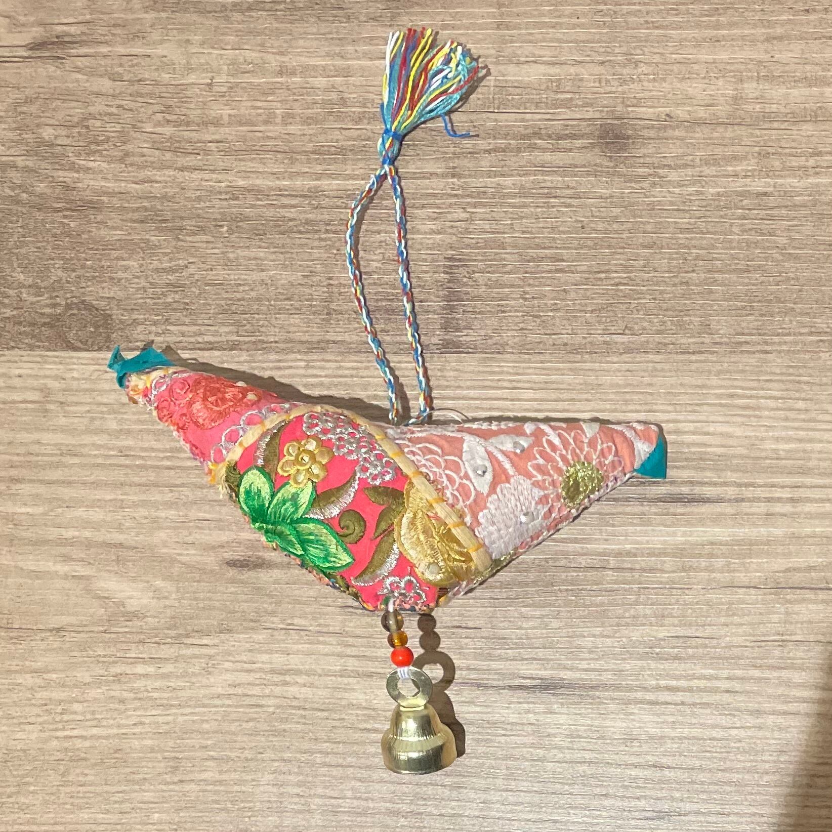 ★期間限定商品10/13まで★ オーナメント バードC 鳥 1点もの カンバディアパッチワーク 古布 パッチワーク タッセル サリー クルタ アップサイクル インド