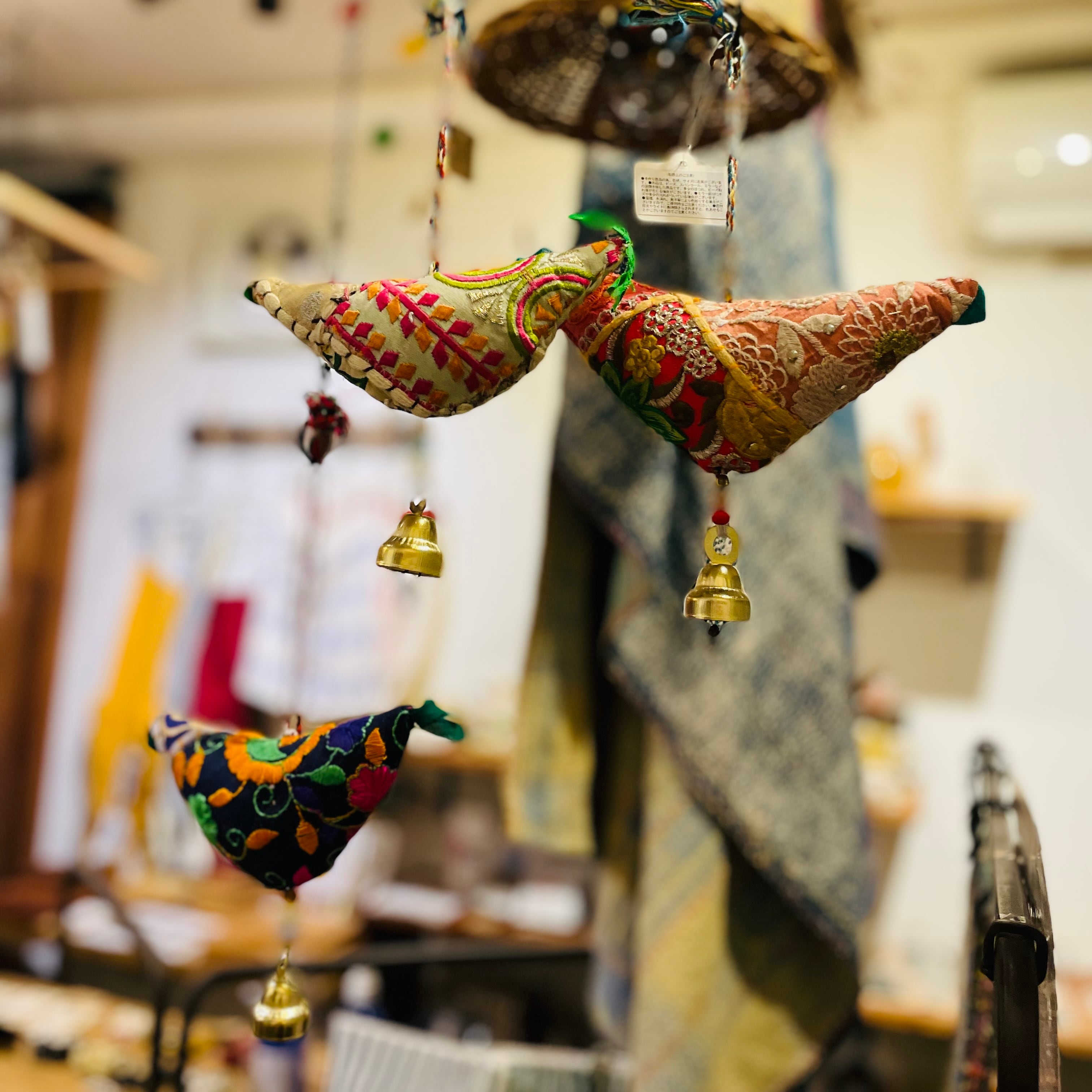 ★期間限定商品10/13まで★ オーナメント バードE 鳥 1点もの カンバディアパッチワーク 古布 パッチワーク タッセル サリー クルタ アップサイクル インド