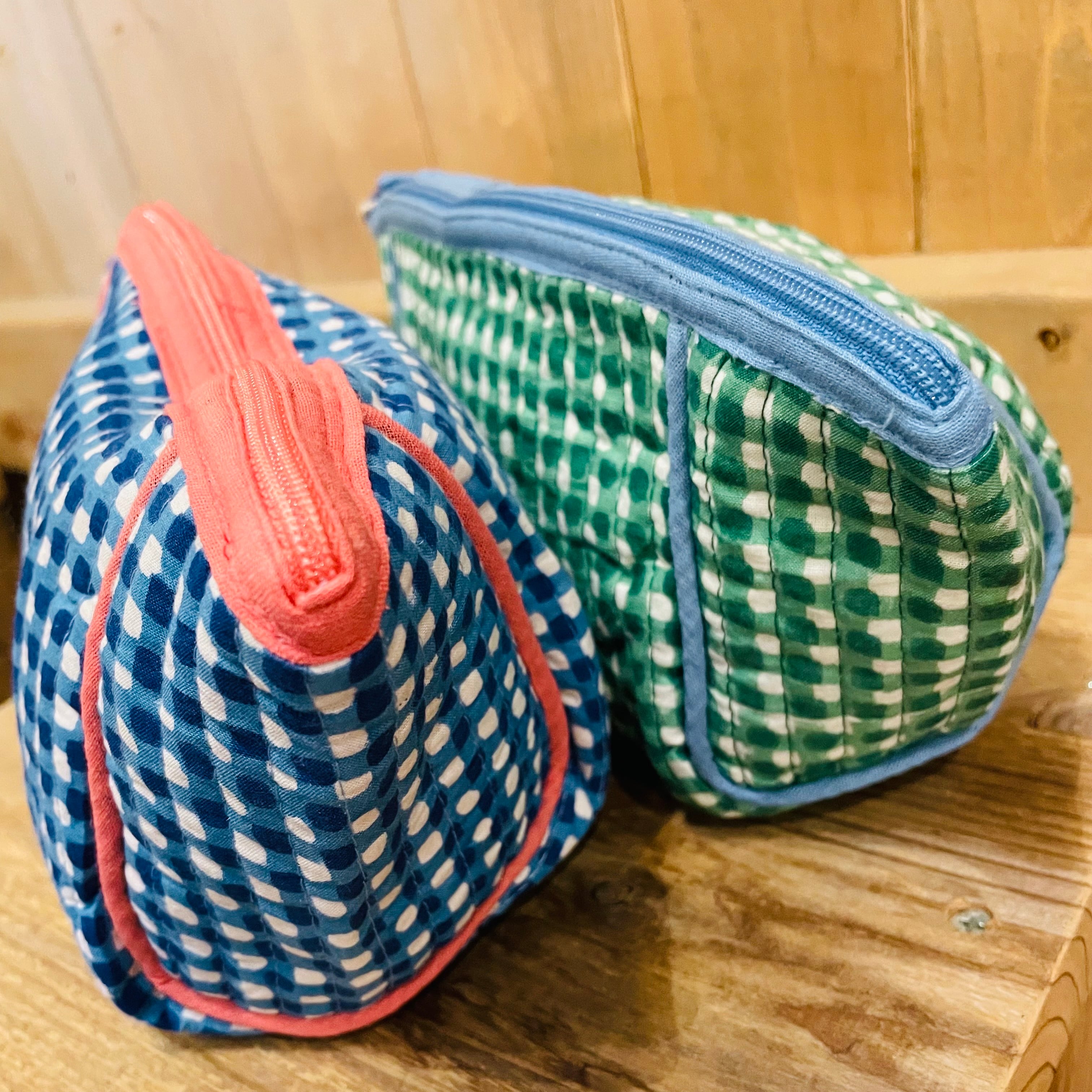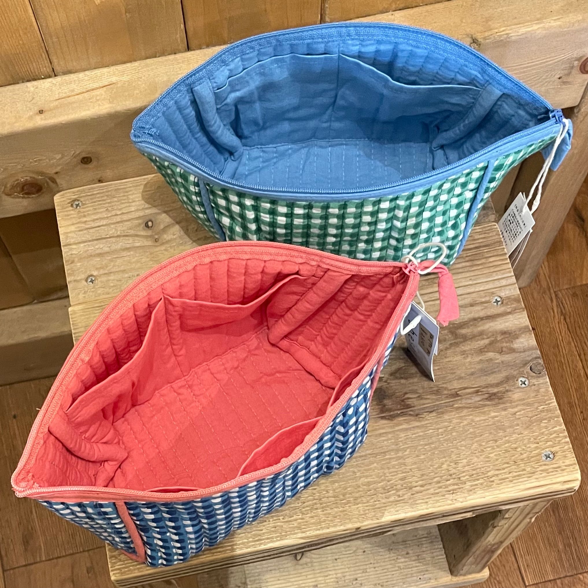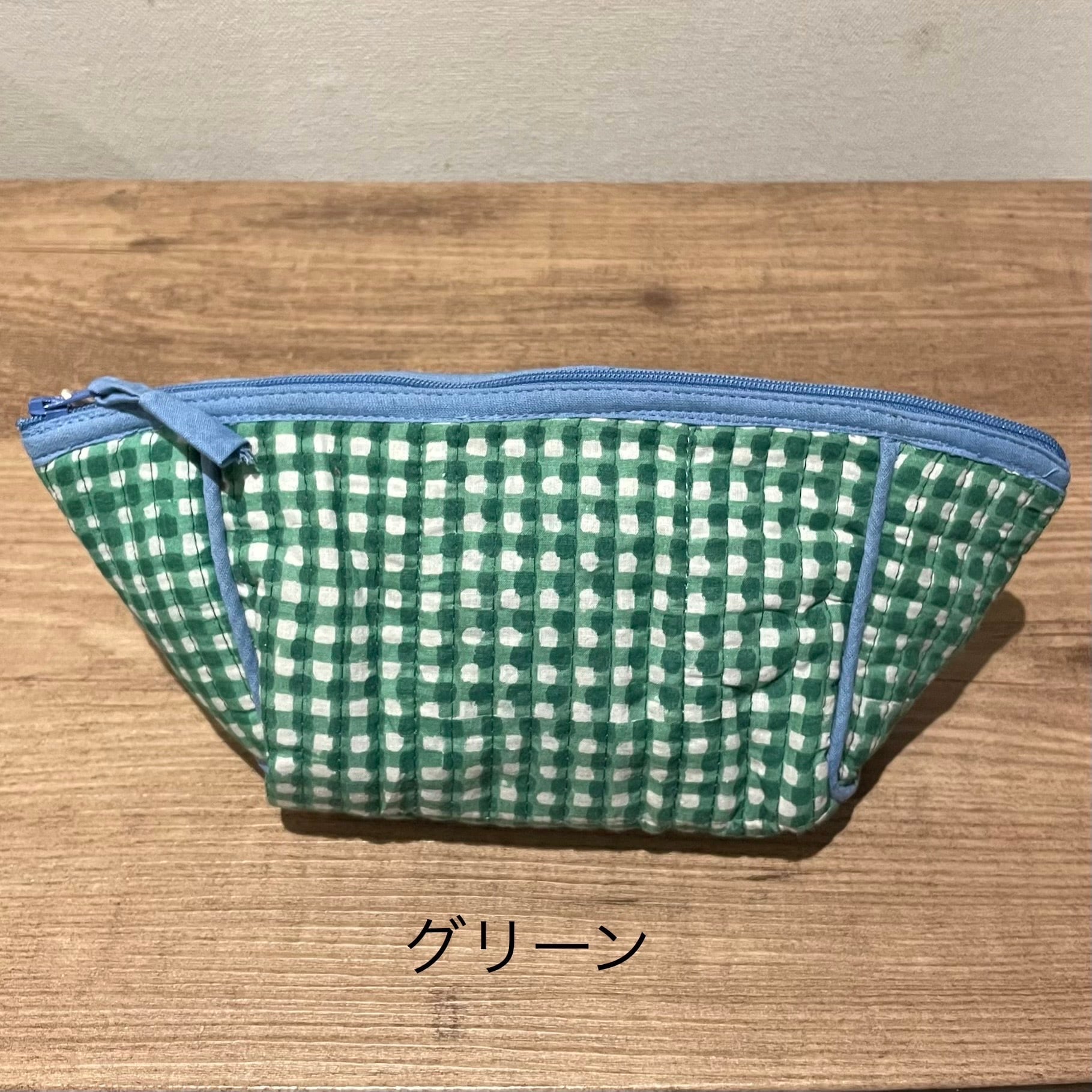 ポーチ ブロックプリント チェック 大きめポーチ バッグインバッグ 旅行ポーチ ペンポーチ