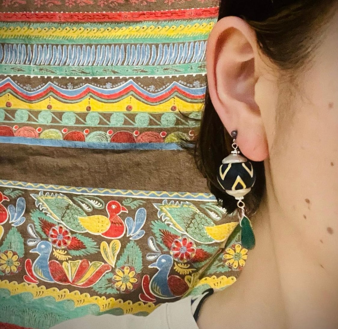 素材:加賀ゆびぬき/ビーズ/ボヘミアンアンティークビーズ(ドロップ型)/ポスト:チタン/イヤリングパーツ:ニッケルフリー