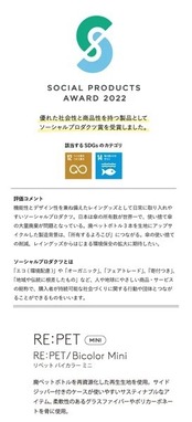 廃ペットボトルを再資源化して作られた再生生地を使用。