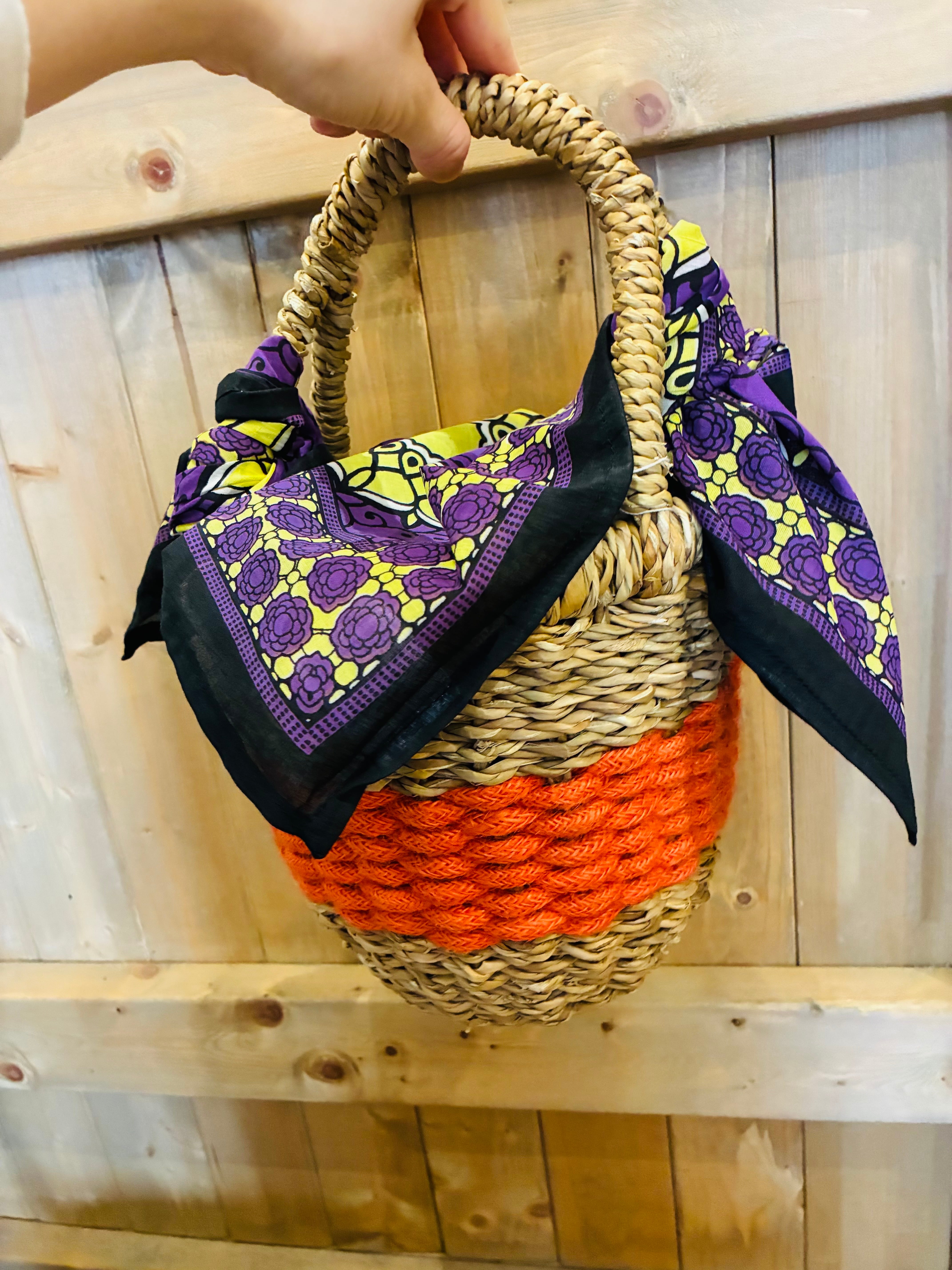 風呂敷のように結んでバッグにしたり、バッグのハンドルに結んだり、、