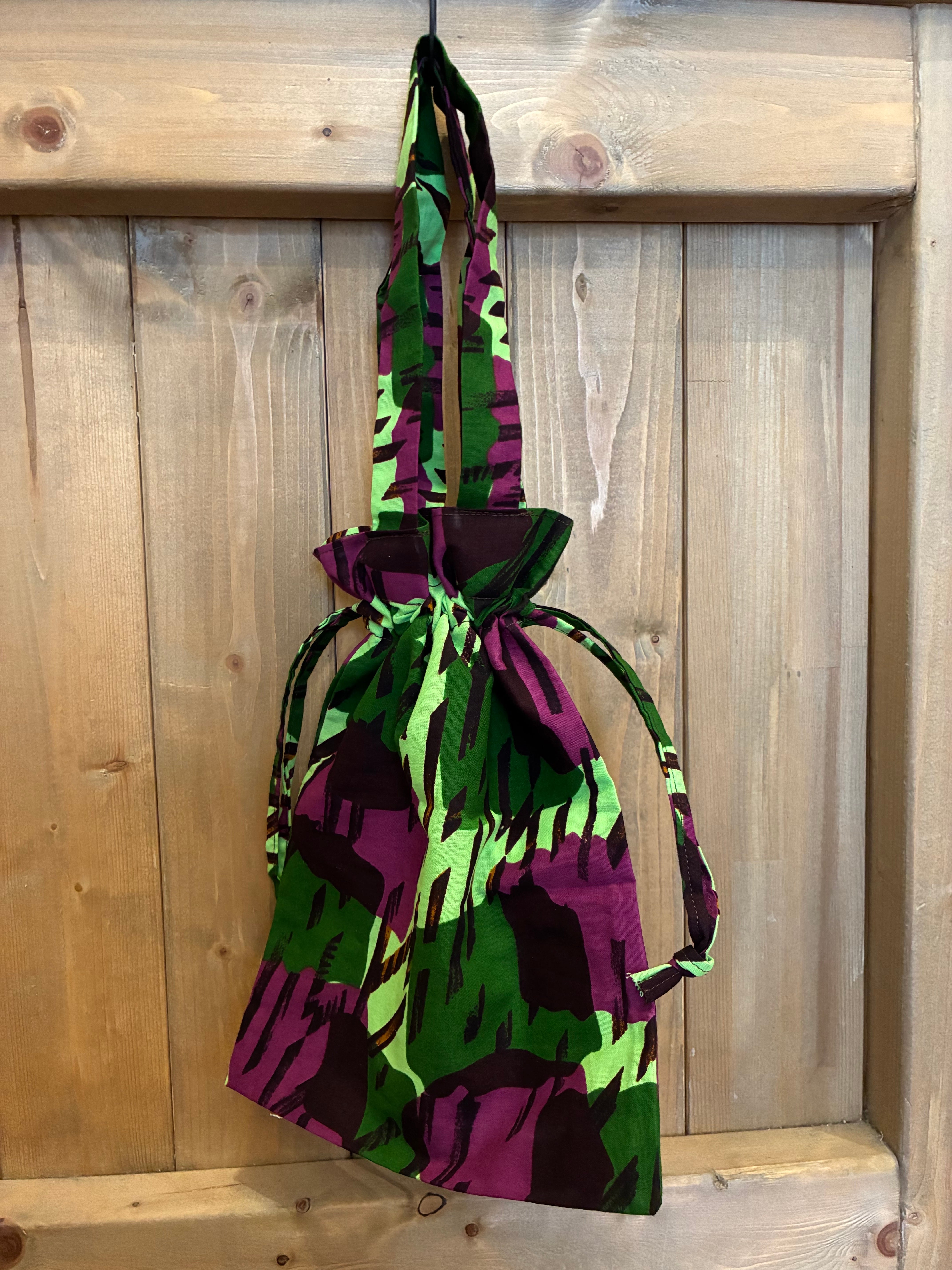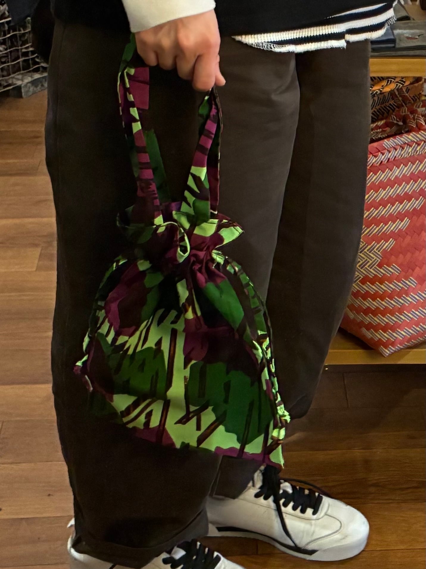 厳選したパーニュ布(アフリカンバティック)で作られたミニ巾着バッグ。