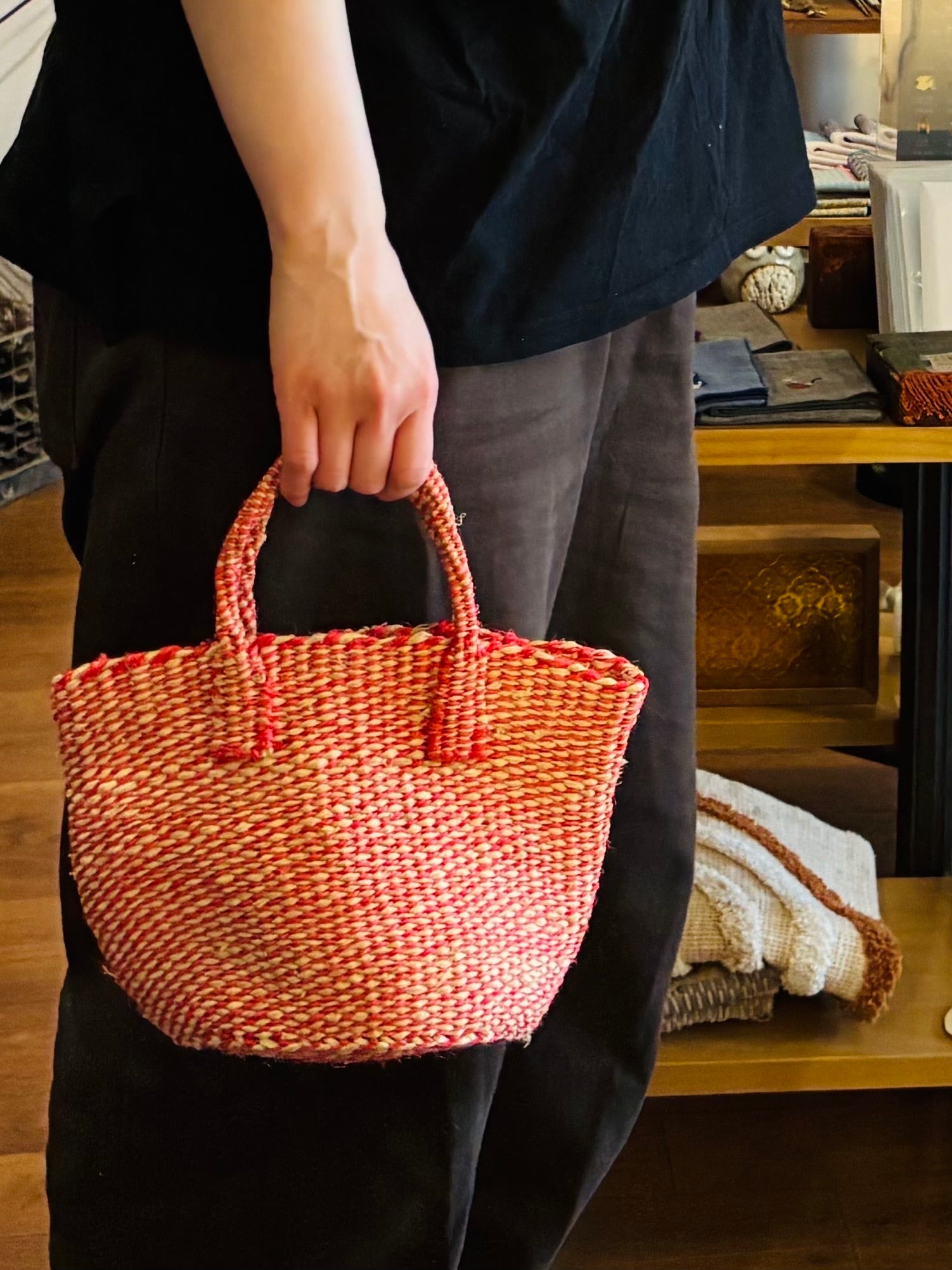 カゴバッグ ラフィアサイザルバッグ ミニ ポピーレッド